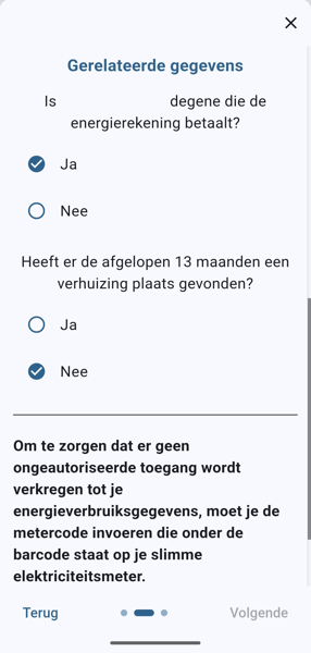 Hierna zal om een bevestiging gevraagd worden, en zodra je bevestigt zal de meteruitlezing zo snel mogelijk opstarten! Weet je niet precies hoe je metercode er uit ziet, raadpleeg dan deze pagina.