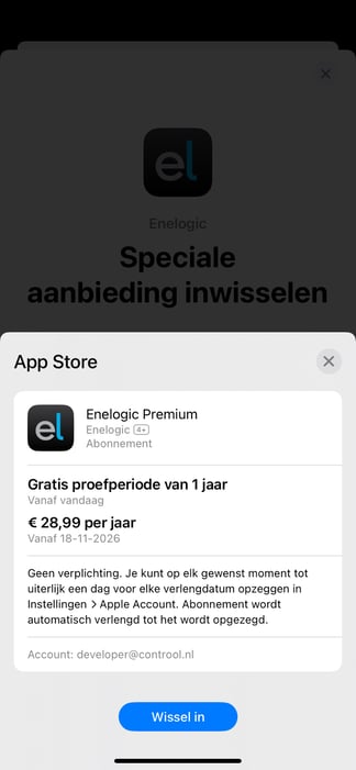 Klik op de link die je van support@enelogic.com ontvangt en klik op "Wissel aanbieding in".